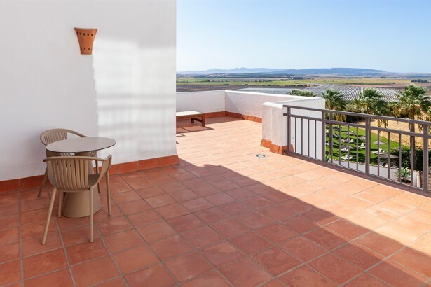 Suites de luxe avec terrasse ou véranda offrant une vue sur la vallée de La Janda ou le terrain de golf. Toutes les suites disposent d'un salon, de 2 chambres et de 2 salles de bains entièrement équipées. Elles sont équipées d'un téléphone avec ligne directe, d'une connexion wifi haut débit, d'une climatisation individuelle, d'un minibar, d'une télévision à écran plat, d'un coffre-fort et d'un sèche-cheveux. Service de thé/café.